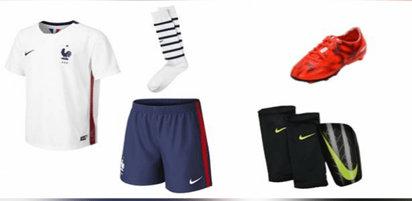 Pour un match de foot, il faut à un joueur : un maillot ou un gilet d’équipe, une culotte communément appelée short, des bas qui doivent toujours se trouvés à l’intérieur du short à noter que toute l’équipe doit avoir la même couleur, des protège-tibias qui doivent être entièrement recouvert par les bats et qui doivent être d’une matière adéquate comme le plastique ou le caoutchouc, ils doivent offrir une protection appropriée. Spécifions que leur port est obligatoire. Le bas du maillot doit toujours se trouver à l’intérieur du short.